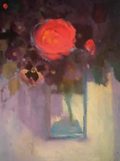 Rose and Pansies Oil on Linen