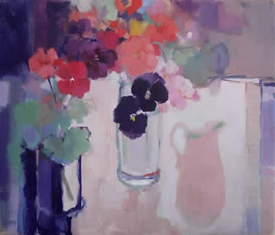 Still life with Dark Pansies Oil on Linen